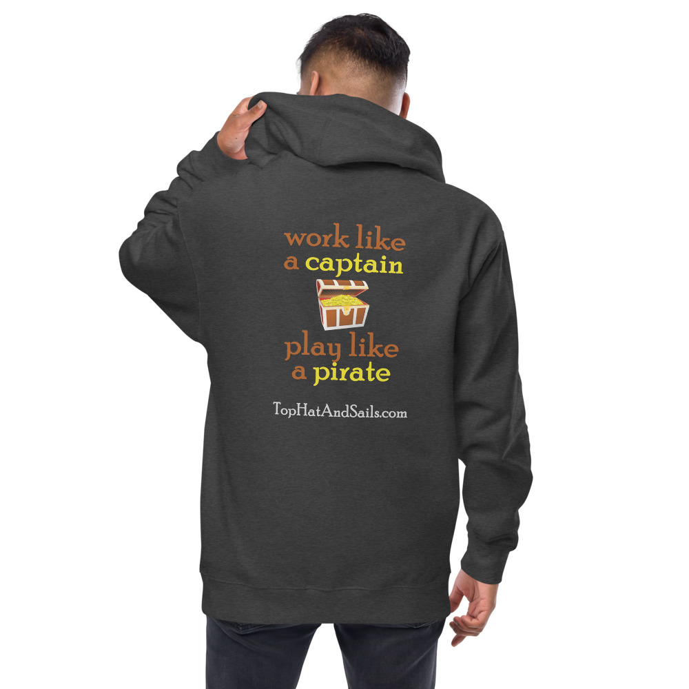 "Work Like a Captain, Play Like a Pirate" Unisex Fleece Zip-up Hoodie