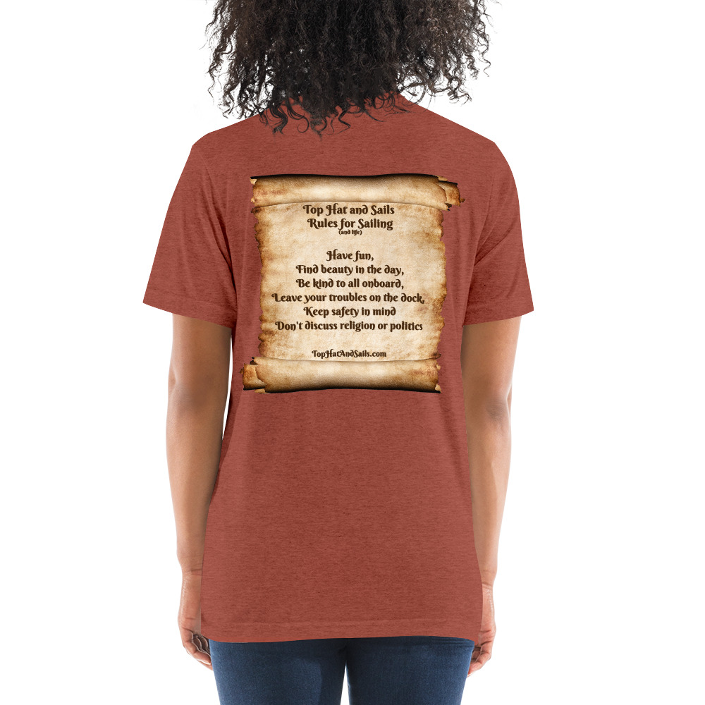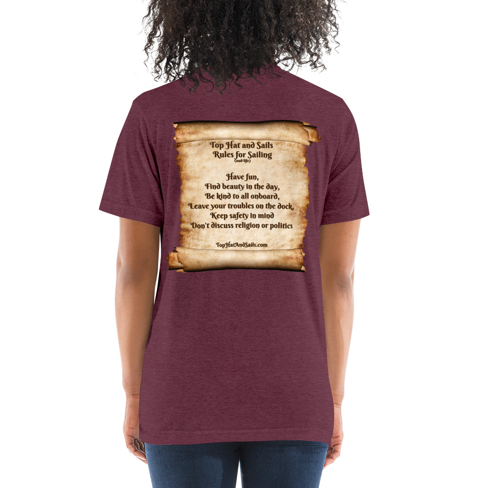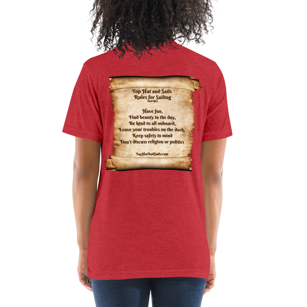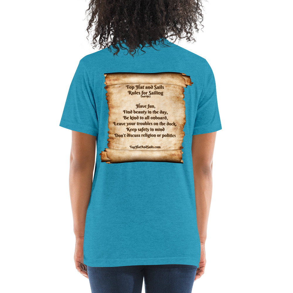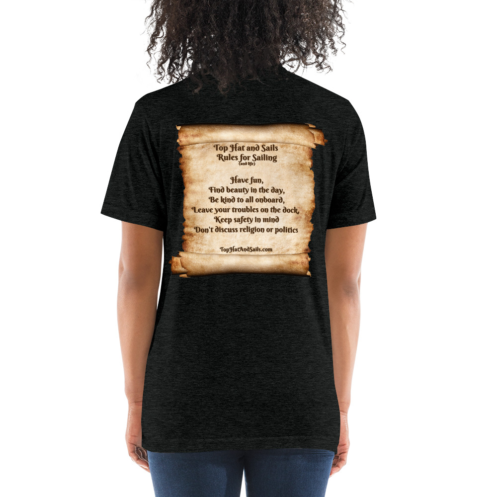 The pledge on the back is how we approach sailing... and life! The tri-blend fabric creates a vintage, fitted look. And extreme durability makes this t-shirt withstand repeated washings and still remain super comfortable. Available in 14 fantastic colors.