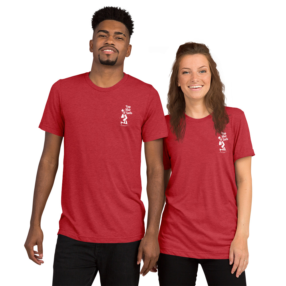 The front left (port side) breast features the Top Hat & Sails Logo and you'll find a skeleton pirate, enjoying his treasure on the back. The tri-blend fabric creates a vintage, fitted look. And extreme durability makes this t-shirt withstand repeated washings and still remain super comfortable.